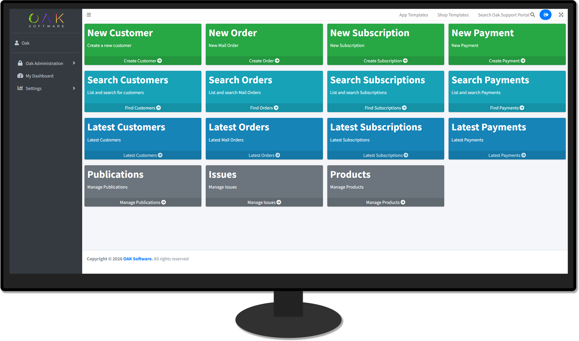Our templated Oak WebShop puts you in control, enabling management of subscriptions, products, and customer data.
